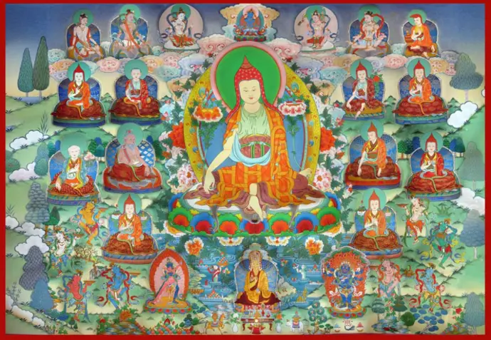 Guru-yoga is een essentiële beoefening in de Ngöndro-praktijk die zich richt op het ontwikkelen van een diepe verbondenheid met je leraar of met het Sanskriet equivalent ‘guru’. In het Mahayana boeddhisme wordt de leraar gezien als de belichaming van de Drie Juwelen: de Boeddha, de Dharma en de Sangha. Je leraar is niet slechts een leermeester, maar een bron van zegeningen en wijsheid die je helpt het pad naar de verlichting te volgen.